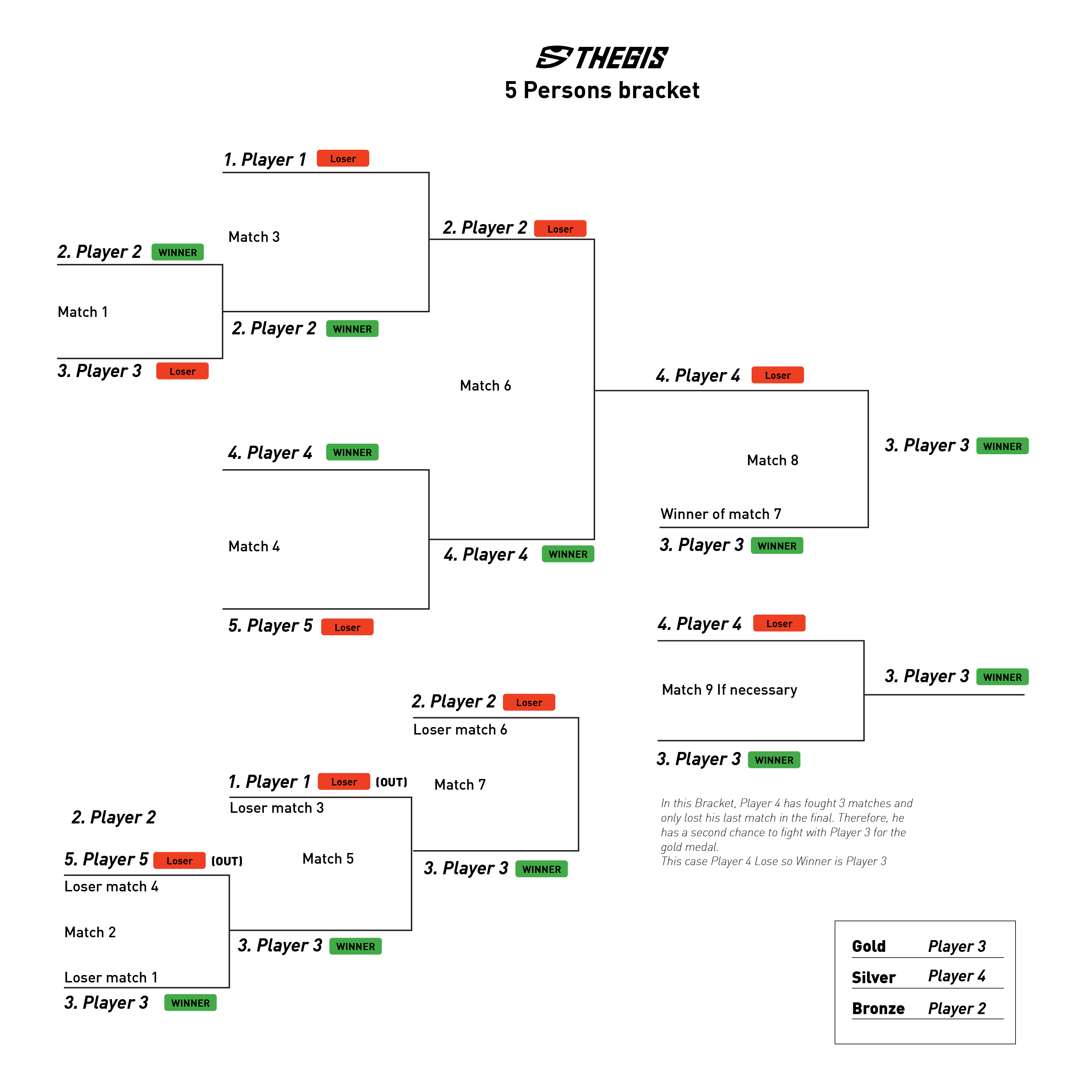 - Winners in the Loser’s Pool may still advance to compete for Gold Medal.