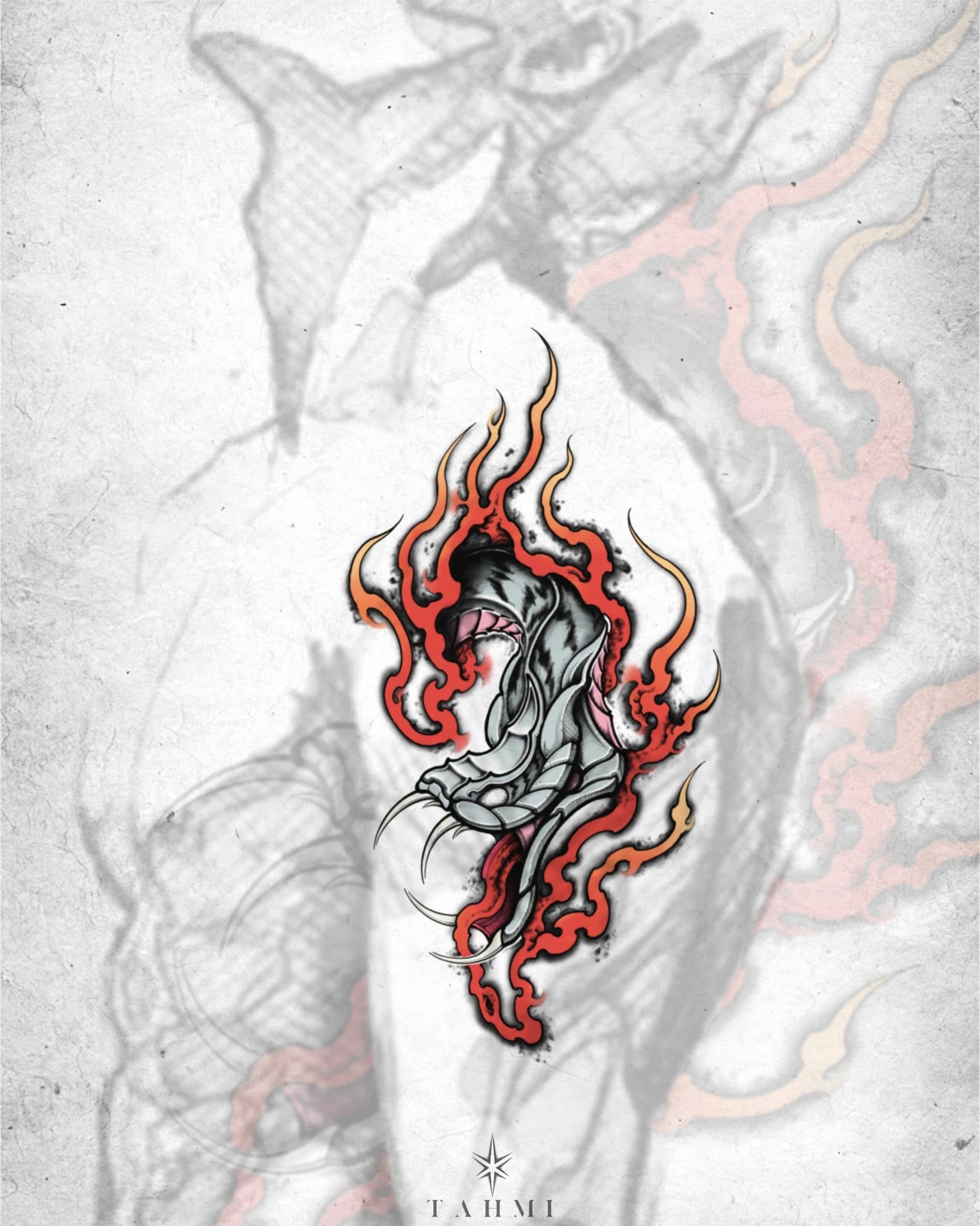 Dự án BLAZE VIPER với TheGIS tiếp tục khai thác một trong những hình tượng quen thuộc trong ngôn ngữ nghệ thuật của Tahmi: Con rắn. Trong thiết kế này, hình ảnh rắn được kết hợp cùng các mảng lửa đỏ rực, tạo nên một biểu tượng vừa mang cảm giác uyển chuyển vừa thể hiện nguồn năng lượng mạnh mẽ. Trong nhiều nền văn hóa, rắn tượng trưng cho sự linh hoạt, khả năng thích nghi và sức mạnh tiềm ẩn. Khi kết hợp với yếu tố lửa, hình ảnh này trở thành biểu tượng cho sự bùng nổ năng lượng và tinh thần không ngừng vươn lên.